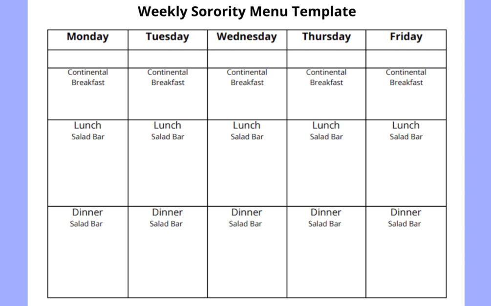 Template - Sorority Weekly Menu$2.99$2.99https://schema.org/InStockusdSorority MomSorority MomAdd to cartAdd to wishlist New wishlistShareShare on XShare on Facebook Copy linkCopy product URL